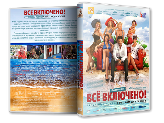 Год выпуска: 2011 Страна: Россия Слоган: «Курортный роман с риском для жизни» Жанр: комедия Продолжительность: 01:32:39 Перевод: ОригинальныйРежиссер: Эдуард Радзюкевич Сценарий: Александр Маленков Продюсер: Михаил Спектор, Михаил Беспалов, Тимур Хван Оператор: Денис Панов Композитор: Аркадий Укупник В ролях: Михаил Беспалов, Федор Добронравов, Роман Мадянов, Эдуард Радзюкевич, Андрей Кайков, Григорий Сиятвинда, Нонна Гришаева, Анна Ардова, Марина Александрова, Мирослава КарповичОписание: Жизнь Андрея - владельца дорогой и востребованной ветеринарной клиники для домашних животных с Рублевки - определенно удалась. Мало того, он не обделен вниманием и прекрасных хозяек милых зверюшек. Но страстная ночь с женой олигарха Эвелиной меняет все: ревнивый муж Эдик очень доходчиво объясняет, что изменит сладкую жизнь успешного бизнесмена. Единственный выход - это побег из страны. И Андрей уезжает в Турцию по программе «Все включено», не подозревая, что в нее включено намного больше, чем кажется на первый взгляд. За ним по пятам следует австрийский киллер Рудольф, а солнечные пляжи таят самое главное испытание в жизни...Релиз: Раздача группы: Качество: DVD5 (сжатый) Формат: DVD Video Видео: MPEG2; PAL 16:9 (720x576) Аудио: Dolby AC3, 6 ch, 448 Kbps Russian Субтитры: нетДополнительная информация : Исходник : DVD9 (4.86 Гб) [лицензия, PAL 16:9] Убрано : часть допа "Анонсы" Сжатие фильма : нет
