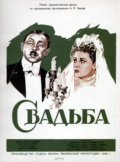 Год выпуска: 1944 Страна: СССР (Тбилисская киностудия) Жанр: комедия Продолжительность: 1:00:54 Версия фильма: Unrated / Полная версия Субтитры: Нет Режиссёр: Исидор Анненский Сценарист: Исидор Анненский Композитор: Валерий Желобинский В ролях: Эраст Гарин Зоя Фёдорова Алексей Грибов Фаина РаневскаяОписание: «Свадьба» — комедийный художественный фильм, снятый в 1944 году режиссёром Исидором Анненским.