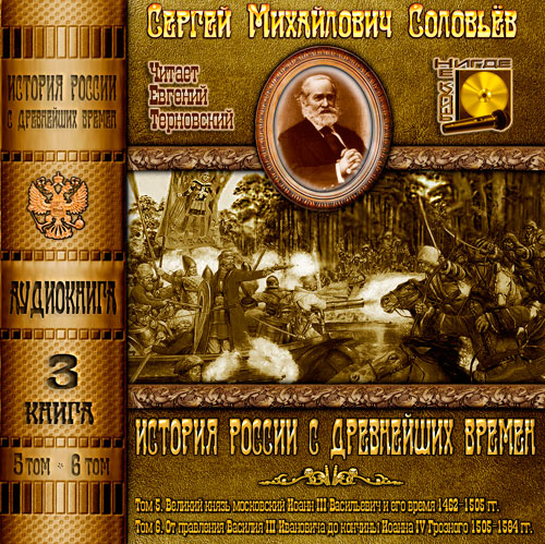 Формат: аудиокнига, MP3, 48kbps Автор: Сергей Соловьев Год выпуска: 2014 Жанр: История Издательство: Нигде не купишь Исполнитель: Евгений Терновский Продолжительность: 51:27:30 Описание: Знаменитый труд великого русского историка Сергея Михайловича Соловьева (1820-1879) является крупнейшим достижением русской исторической науки XIX в. Соловьев - "первый среди равных" в плеяде блестящих русских историков, в которую входят Н. Карамзин, В. Ключевский, Н. Костомаров, А. Пресняков, Т. Грановский, С. Платонов и многие другие. Пятый том обширного 29-томного труда охватывает время правления Великого князя Московского Иоанна III Васильевича. Шестой том охватывает время от правления Василия III Ивановича до кончины Иоанна IV Грозного 1505-1584 гг.